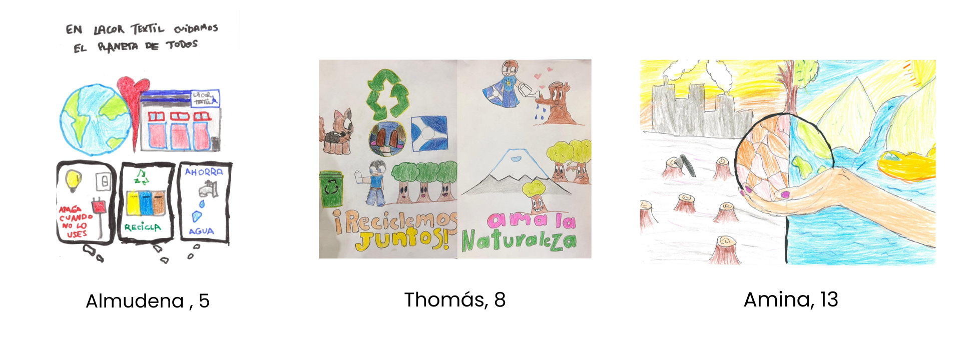 Choosing the winning drawings was not an easy task. Lacor Textil’s Innovation Team assessed aspects such as originality, technique, and especially the message conveyed in each artwork. Finally, the winners were: